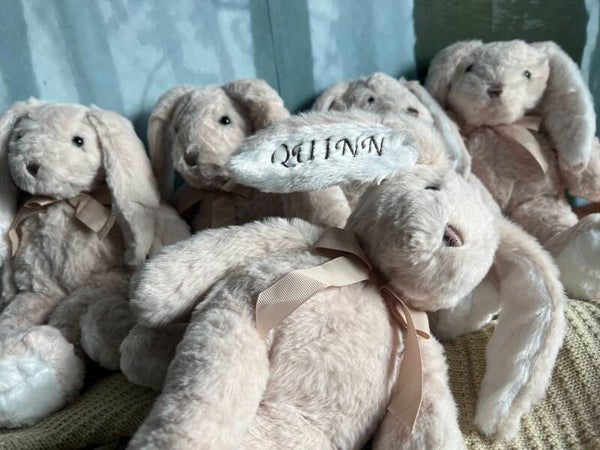 Op zoek naar een origineel en liefdevol cadeau? Dit zachte knuffelkonijn wordt speciaal voor jou gepersonaliseerd met een geborduurde naam op het oortje. Een uniek aandenken en het perfecte cadeau voor een geboorte, verjaardag, doop of babyshower.